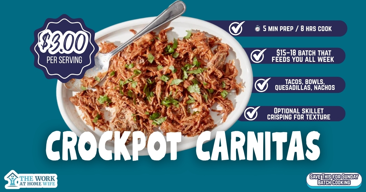 Three pounds of pork shoulder, one jar of salsa verde, and patience. That’s the whole recipe. The pork cooks down for eight hours until it shreds with a spoon, and the salsa keeps everything moist without getting mushy. I serve it in ten different ways throughout the week. Tacos on Monday, burrito bowls on Tuesday, quesadillas when I’m desperate on Thursday. Sometimes I’ll crisp it up in a skillet for two minutes if I want that restaurant texture, but honestly, it’s good straight from the slow cooker too. The whole batch costs maybe $15-18 and produces enough meals that I stop feeling guilty about the grocery bill.