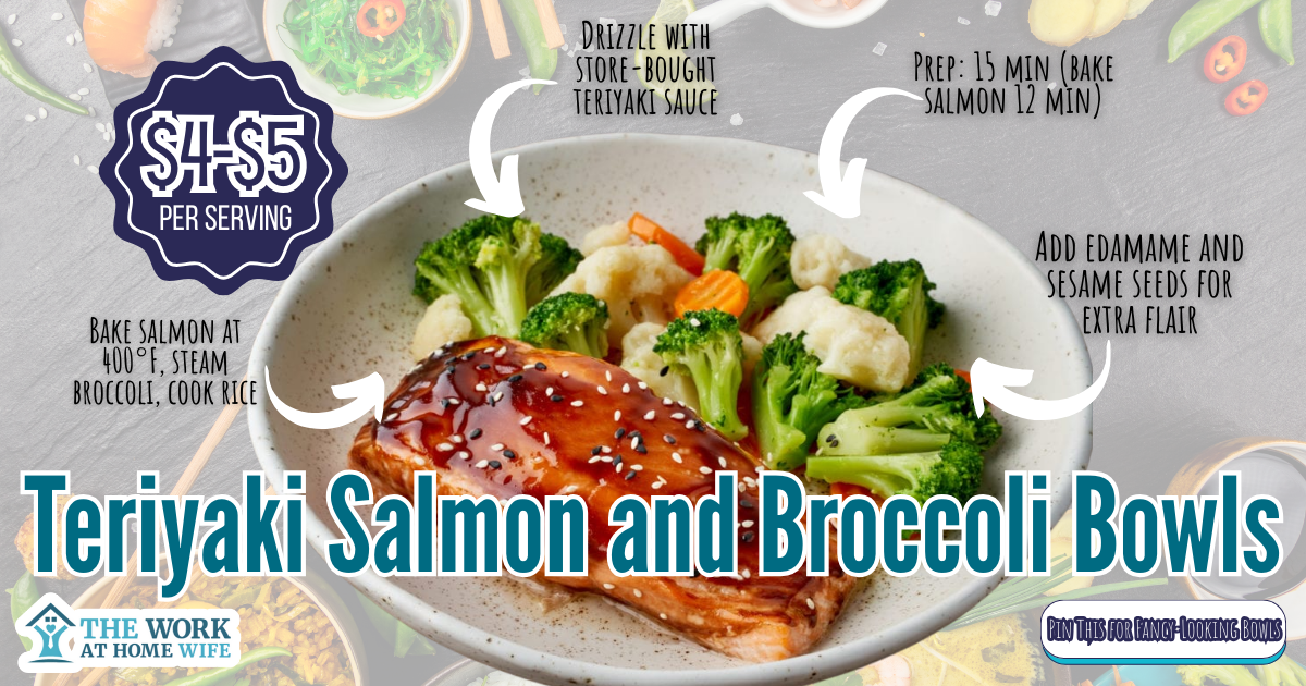 Salmon meal prep sounds fancy, but it’s honestly easier than chicken. Buy the teriyaki sauce; don’t make it from scratch unless you’re feeling ambitious. Bake the salmon at 400° for 12 minutes while you steam broccoli and make rice. That’s it. The salmon stays moist if you don’t overcook it. Set a timer for 12 minutes and walk away. I added edamame and sesame seeds because it makes me feel like I ordered takeout. Cost is around $4-5 per bowl if you catch salmon on sale. Reheats perfectly in the microwave, which shocked me the first time.